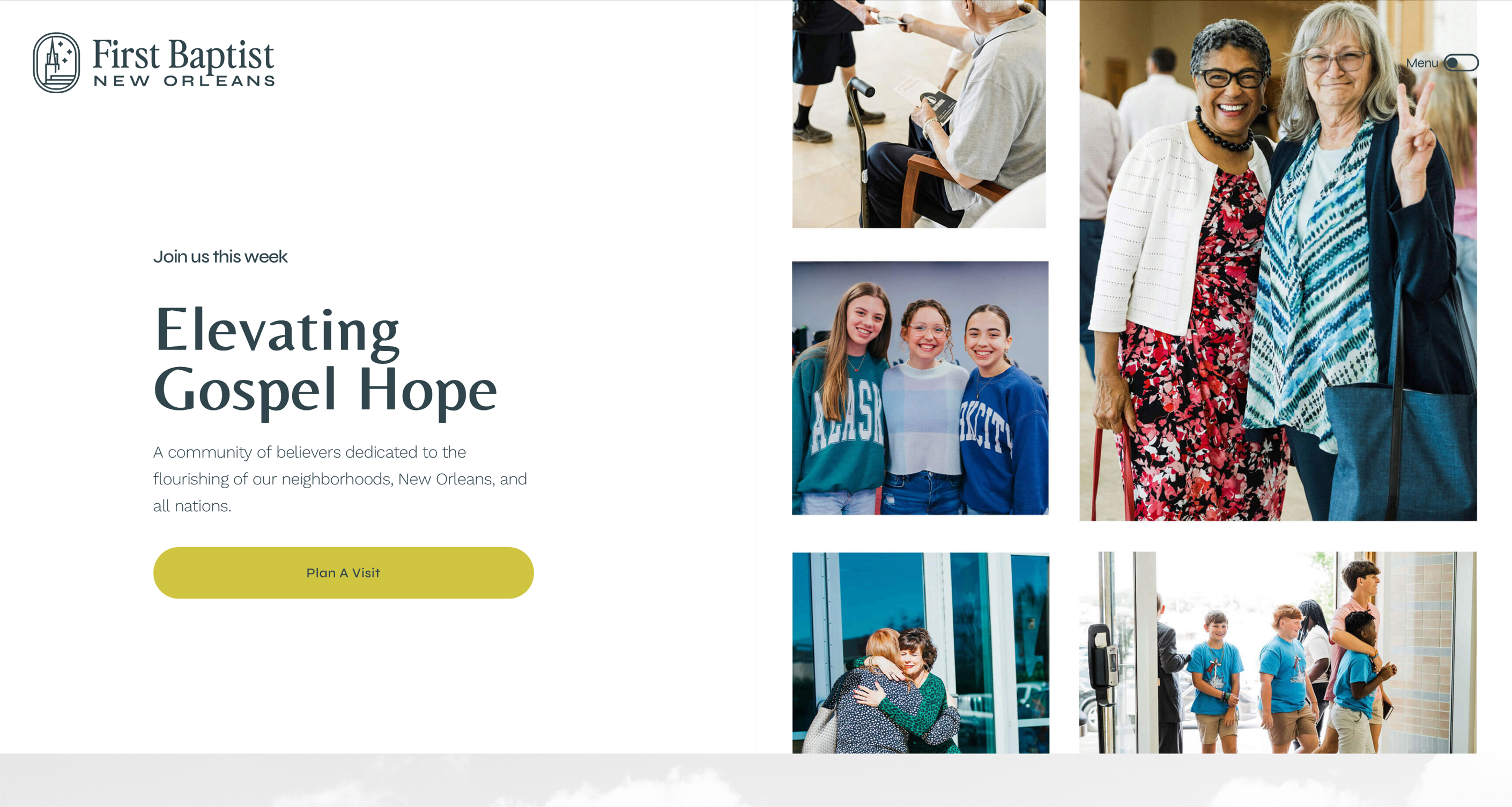 But what if you don't have a strong full-width image? In that case, a collage hero is a great solution. By combining multiple photos into a single mosaic, you can showcase different aspects of church life at once. This layout keeps the design visually interesting while avoiding reliance on a single perfect photo.